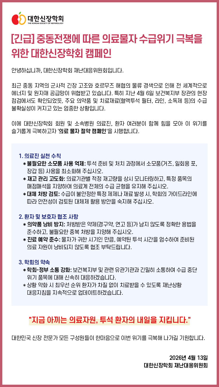[긴급] 중동전쟁에 따른 의료 물자 수급 위기 극복을 위한 캠페인