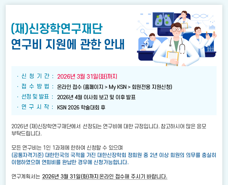 (재)신장학연구재단 2026 연구비 지원에 관한 안내